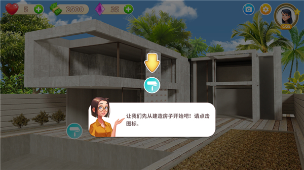 1、打开游戏,迎接你的第一次接单,你需要装修好这个房子。