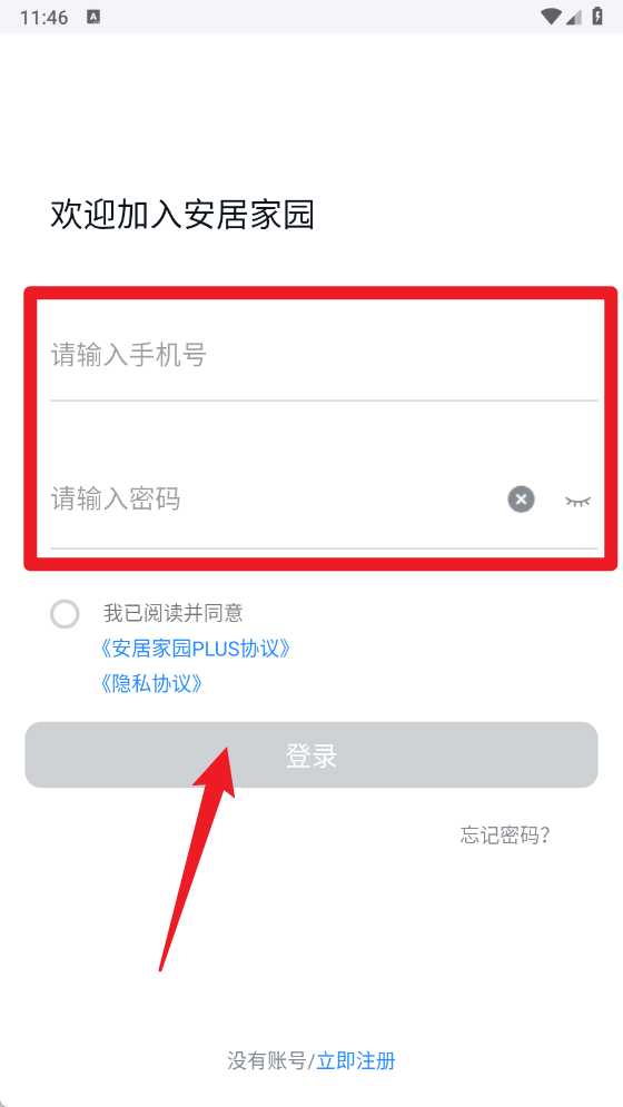 2、在登录界面输入手机号和密码完成注册或登录。