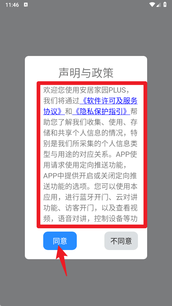 1、首次使用时,请仔细阅读《软件许可及服务协议》和《隐私保护指引》,点击“同意”后进入主界面。