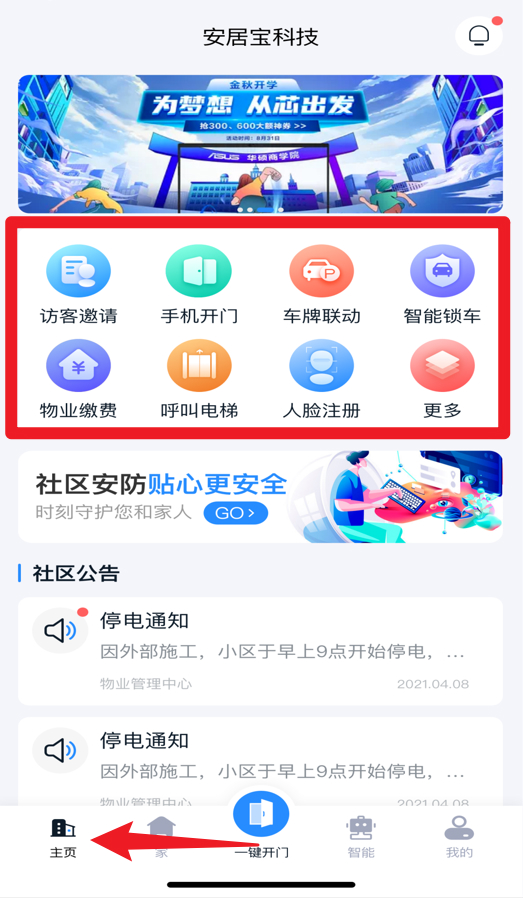 一、打开安居家园app,点击首页中的手机开门