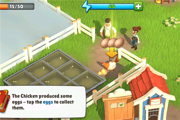 2、进入游戏后,玩家需要帮助爷爷经营农场,按照游戏提示先种植好豆子