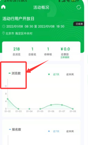 3、查看活动数据,比如报名人数和浏览量,帮助您快速了解活动效果,优化后续安排。