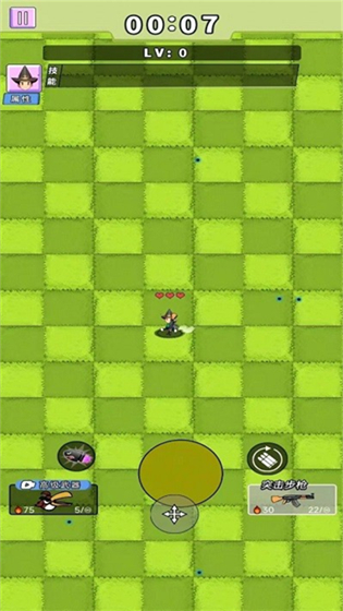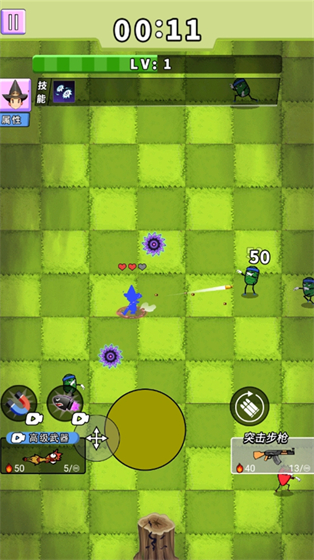 1、进入战斗后,操控角色在地图中自由移动,攻击来袭的怪物并保持生存。