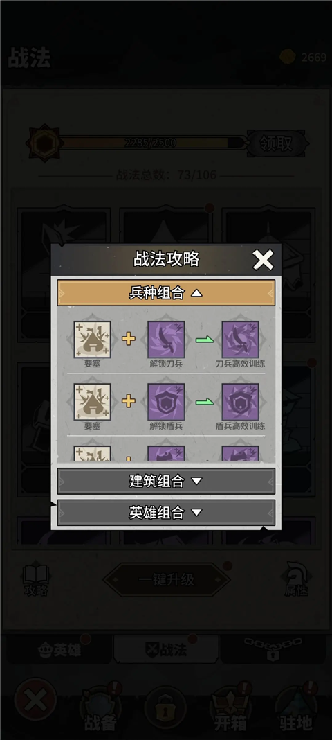 如遇到非要选择英雄类谋略和建筑类谋略的情况,尽量选择英雄谋略内统帅分支的谋略,可以解锁后续提升士兵属性的谋略,进攻才是最好的防守,人海战术永不过时。