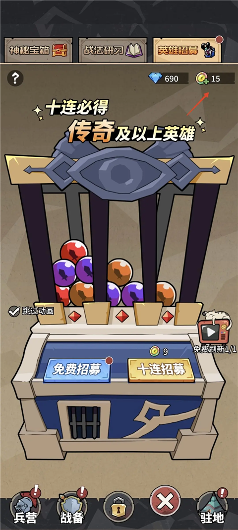 解锁英雄招募后,可以将已拥有的扭蛋币全部使用,但是不建议购买更多的扭蛋币,这个池子抽取最高级英雄的概率较低,且额外的英雄暂时没有作用,性价比较低,留着买培养材料比较香。