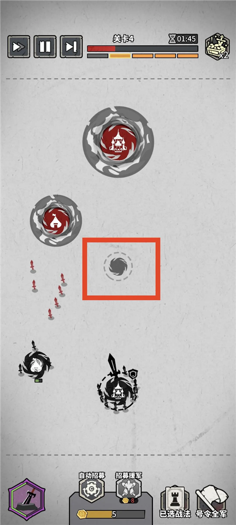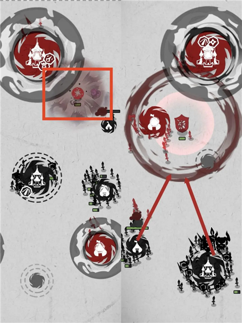 开局尽量抢占中立建筑,此时没有士兵防守,占领比较轻松。前几波别当莽夫,尽量通过英雄防守,减少士兵损耗。前期不要积累过多士兵,请疯狂升级自家大本营,提升产兵速度,方便屯兵。(产兵速度拉满才是王道,提升前期的产兵速度对后续的战斗非常重要)