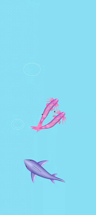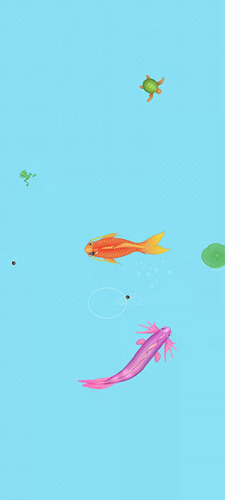 4、当你面对比你强的对手,比如:锦鲤,甚至鲨鱼。你一定要躲它们远远的。只要轻轻一碰,你就会退回上一个等级的形态,最终是小蝌蚪。如果在小蝌蚪形态下,再被碰一下,游戏结束了,你也就输了。结束的时候,游戏会记录你最高纪录的形态。