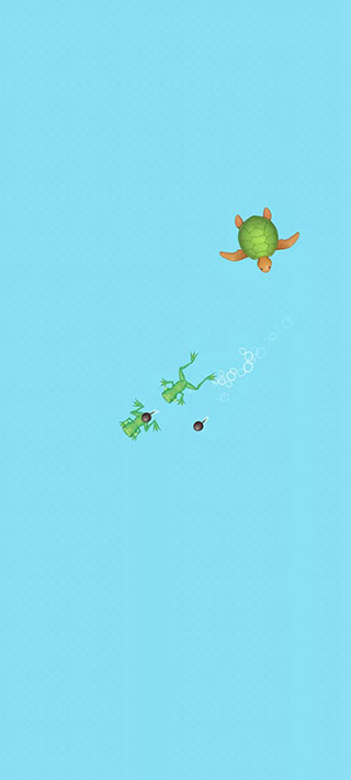 3、小青蛙吃了小蝌蚪,身边就会多了一颗小蝌蚪,当两只小青蛙合成后,就会变成小海龟,以此类推。