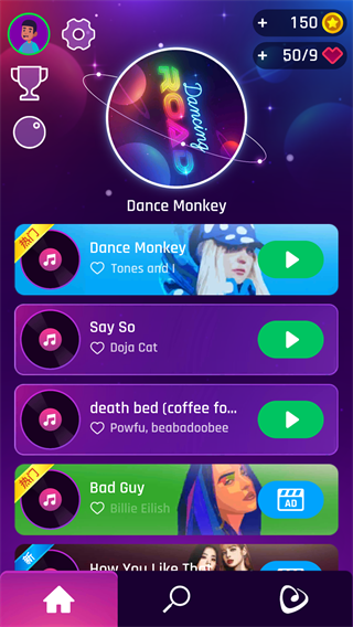 美歌大路音乐球球是一款非常能够放松心情的音乐闯关游戏。简单的游戏操作,带你领略不一样的音乐游戏,在这里玩家需要操控一个小球在不断变换的赛道上前行,收集其他的物质,玩家需要与小球自身颜色相同的球球中通过,收集的小球越多,游戏节奏就会越快,避免撞击不同颜色的小球,而撞击相同的球则会得分,该游戏中的音乐歌曲非常的丰富,在这里,你可以操控自己的小球跟随动感的音乐一起忽上忽下的跳动与前行,带给玩家极大的挑战。