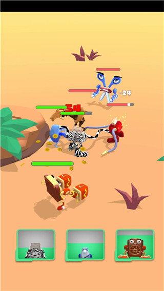 3、每局游戏最多只有三个角色出战,赢得游戏胜利之后,就可以获得更多道具,可以去合成更多的角色。