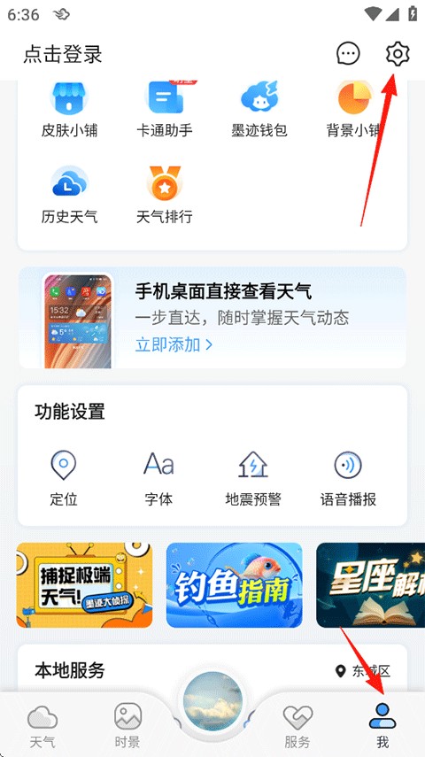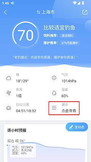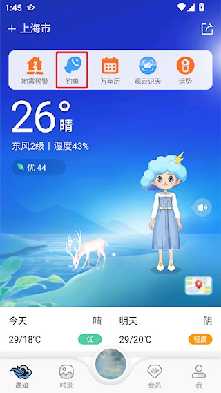 1、打开墨迹天气后,点击上方的【钓鱼】