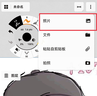 4、另外在绘画界面中你也可以随时导入图片,点击右上角三点