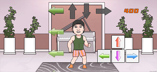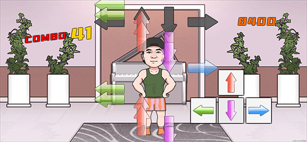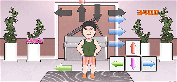 1、进入游戏后,箭头会随着音乐的节奏上升,玩家则需要在箭头到达框中时按下相对应的箭头来让刘耕宏保持健身动作