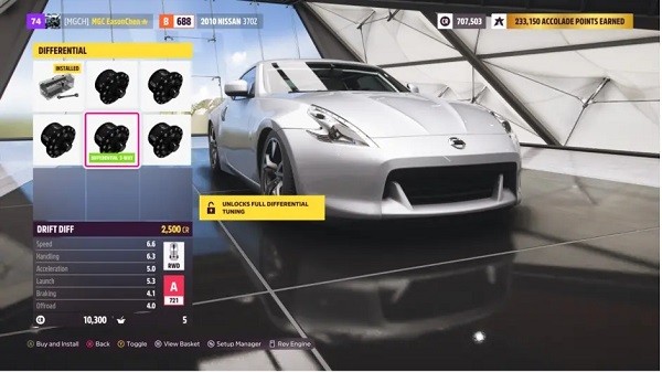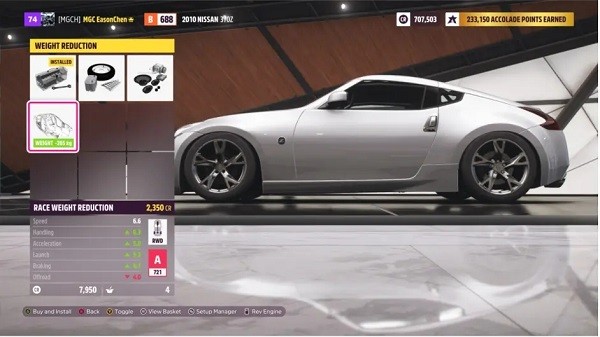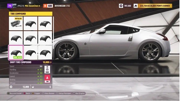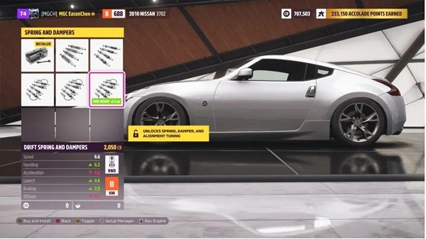 而在练习漂移之前我们也需要对车辆进行改装,下面小编以Nissan?370Z为例: