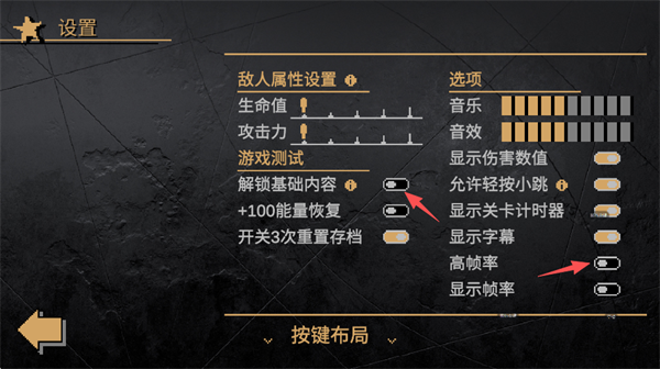 3、可以看到设置中的游戏测试板块中有个“解锁基础内容”,将该功能开启,建议也可以开启“高帧率”,如果手机发烫,那就不推荐开启了。