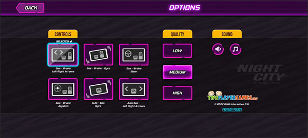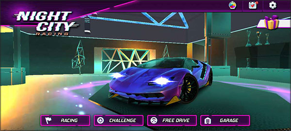 1、下载安装好夜城赛车手游,进入游戏,可以选择三种模式开始游戏,分别是竞速模式,挑战模式,自由驾驶模式。