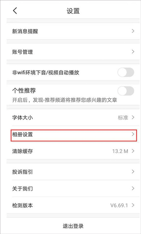 2、进入设置页面后,点击相册设置