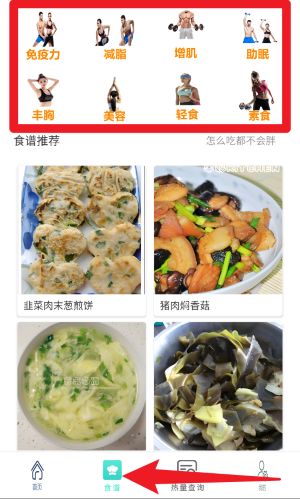 3、点击底部“食谱”栏目可根据免疫力、减脂、美容等需求分类浏览,快速查找适合自身的健康食谱。