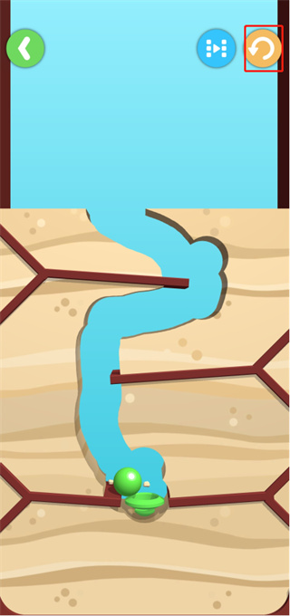 5、如果玩家滑动制作通道失误或者小球滚不到卡槽中,如下图,玩家可以点击重新按钮进行重玩;