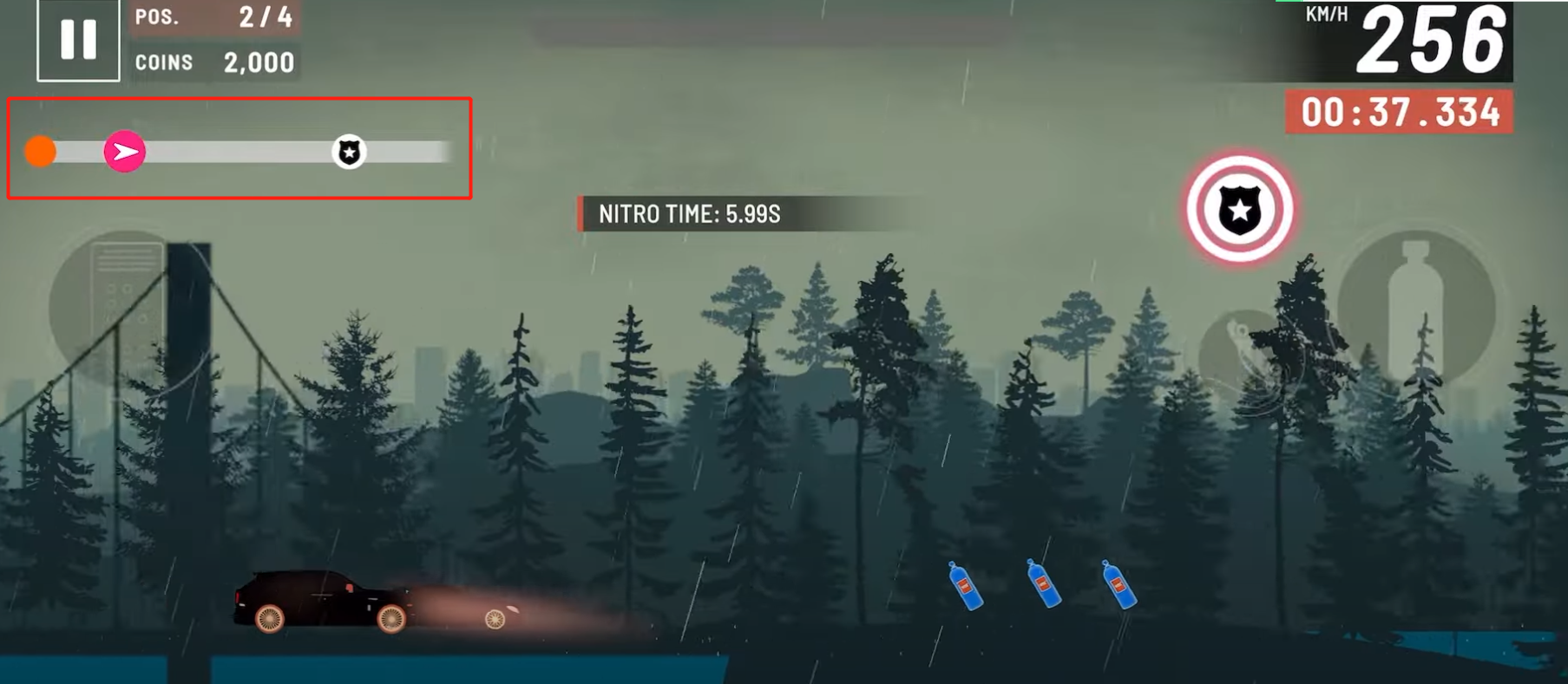 3、从游戏这里可以看出红色标志是行驶到了哪里,前往盾牌的方向,前方有加速瓶道具,可以往前冲冲冲