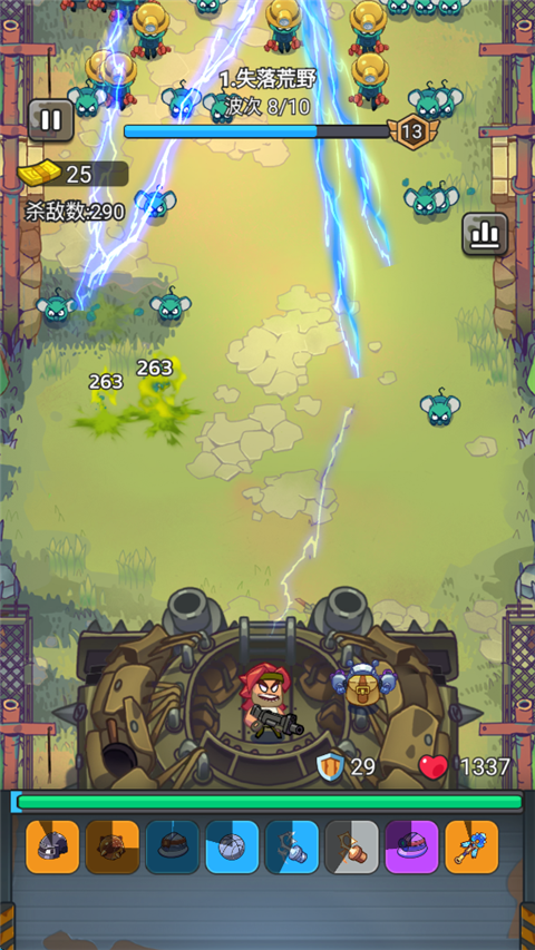 特点:这个搭配涵盖了多种类型的武器,既有范围伤害也有单体输出,适合应对各种战斗场景。雷符和闪电矛提供雷电属性的持续伤害,冲锋和激光棒适合清理小怪,火箭筒和卡车则能在关键时刻造成大量伤害。
