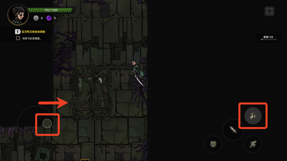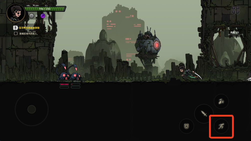 7、同时按住向右方向和跳跃可以跑上墙壁。