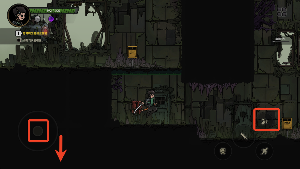 6、同时按住向下方向和跳跃可以跳下平台。