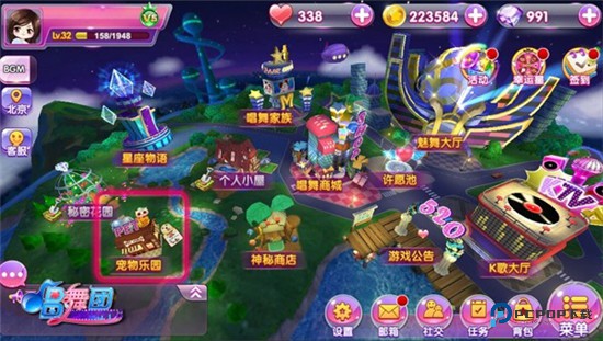1. 宠物乐园位于主社区左侧、神秘商店旁边,是一座房顶有狸猫宠物造型的可爱建筑;