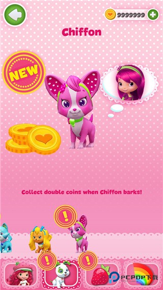 2. Cinnapup:解锁需消耗3450个金币,对应主人为头戴发卡的公主,两者共同挑战时,收集的金币数量可翻倍;