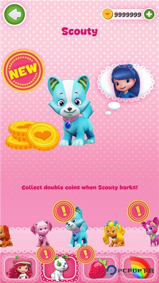 3. Scouty:一只蓝色小狗,解锁需消耗3450个金币,对应主人为蓝发蓝服公主,两者搭配出战可使所得金币翻倍;