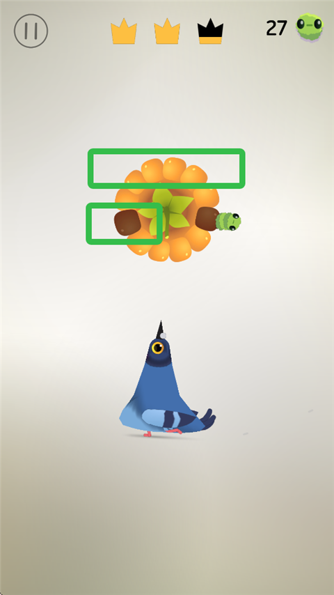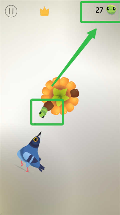 疯狂的鸽子(Pigeon Pop)是一款抖音平台上的热门休闲魔性手游,玩家需要控制鸽子啄食玉米粒、豌豆等美食以及苍蝇等害虫,灵活避开坏的美食以及蜜蜂等益虫。游戏拥有丰富鸟类角色,如松鸦、鹰、渡鸦、鹧鸪、几维鸟等,玩家可用在关卡中吃下的虫子兑换,在关卡通过或失败时,鸽子们还将跳起魔性十足的舞蹈,搭配动感BGM,趣味十足。随着关卡推进,难度增大,玩家需要啄食加速、暂停、清除坏玉米等特殊道具帮助通关,在限定时间内吃掉正常美食,越快完成可获得最高三星的评级。