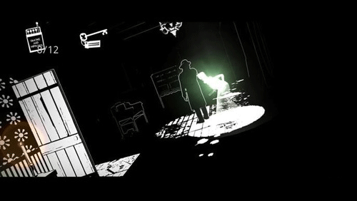 step9:在木门里的房间找到一台放映机,将四个画面全部浏览一遍。之后可以在窗户外面射进来的光形成的十字影子的中心找到一把地下室的钥匙。