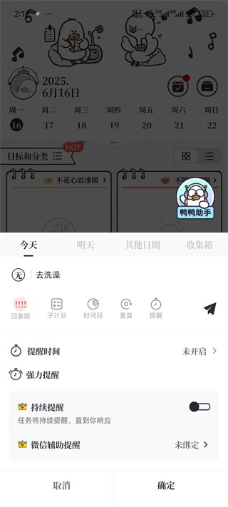 4. 细致的时间控制:个人计划可以直接绑定到专注的番茄定时器,并且计划提醒、完成期限、是否重复都可以自定义