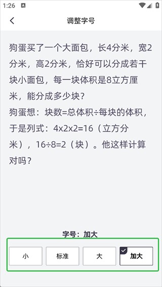 2、点击调整答题页面字号。