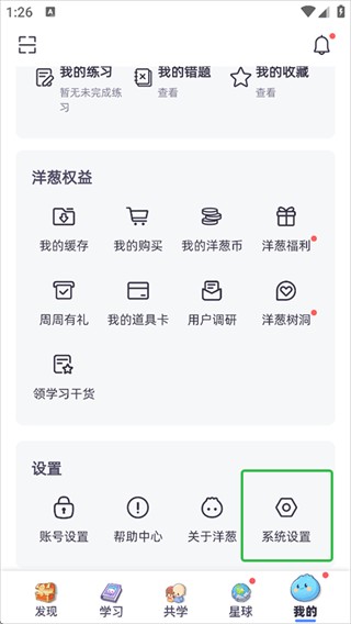 1、在我的页面下滑打开系统设置界面。