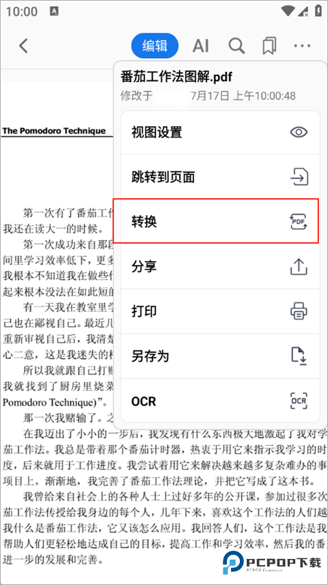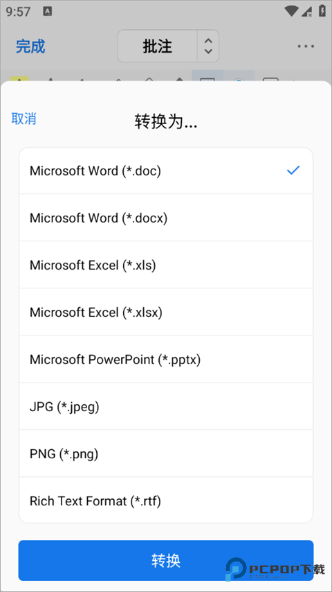 5、点击页面右上角的“…”图标,在弹出的菜单中选择“转换”选项,进入格式转换界面。