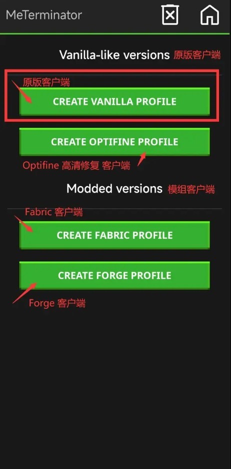 如下图,选择原版客户端;