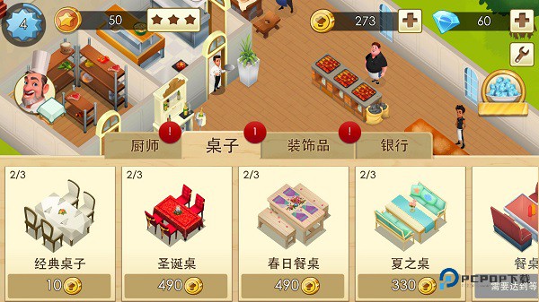 3、 支持餐厅自由定制与社交互动,玩家可自由设计餐厅布局,从桌椅摆放、装饰风格到主题区域打造,全方位定制专属个性化美食帝国,同时可与其他玩家展开社交互动。