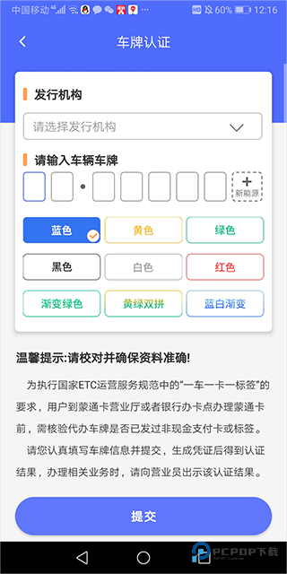 3、按照提示输入车牌相关信息,完成认证后即可成功绑定车辆。