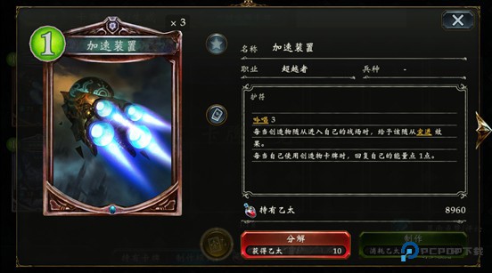 需要注意的是,“稀有度决定卡牌强度”的理论仅适用于大部分情况,铜卡、银卡中也有“超模卡”存在。例如超越者的铜卡护符“加速装置”,强度极高,即便归入虹卡也毫不逊色,很难用上述公式精准衡量。