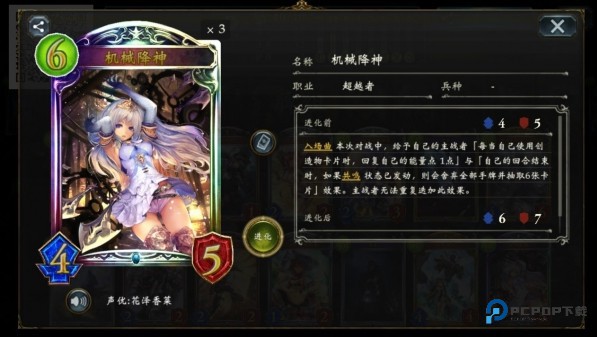 已登场的随从,可消耗1点【进化点】进行进化;进化后的随从,在本回合即可对敌方随从发起攻击,同时攻击力与体力会显著提升,部分随从还会解锁进化专属效果。
