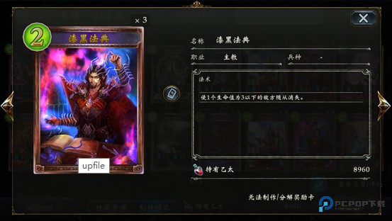 漆黑法典:使1个生命值3以下的敌方随从消失(强度略高)。