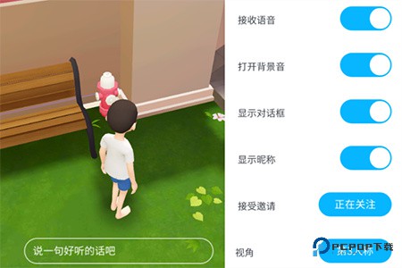 3、点击右上角的“设置”图标,我们就会获得一个设置功能列表,包括了接收语音、打开背景音、显示对话框、显示昵称、接受邀请等,大家可以根据自己的实际情况进行开启或关闭。