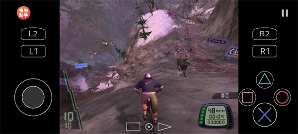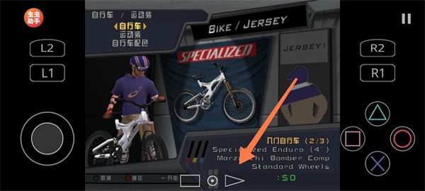 比赛中需灵活操控自行车,把握好转弯、跳跃与漂移的节奏;当遇到对手时,可通过按【O】发动肘击攻击,打乱对方的节奏,率先抵达终点即可取得胜利。