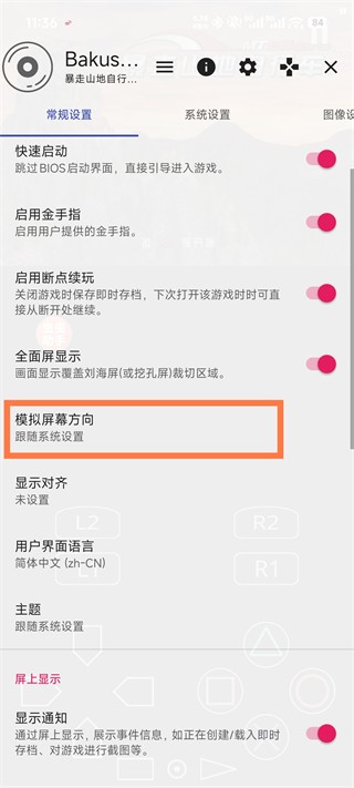 1、打开通过泡美美下载下载的暴走山地自行车手机版模拟器,游戏模式是跟随系统设置,点击右上角的暂停键。