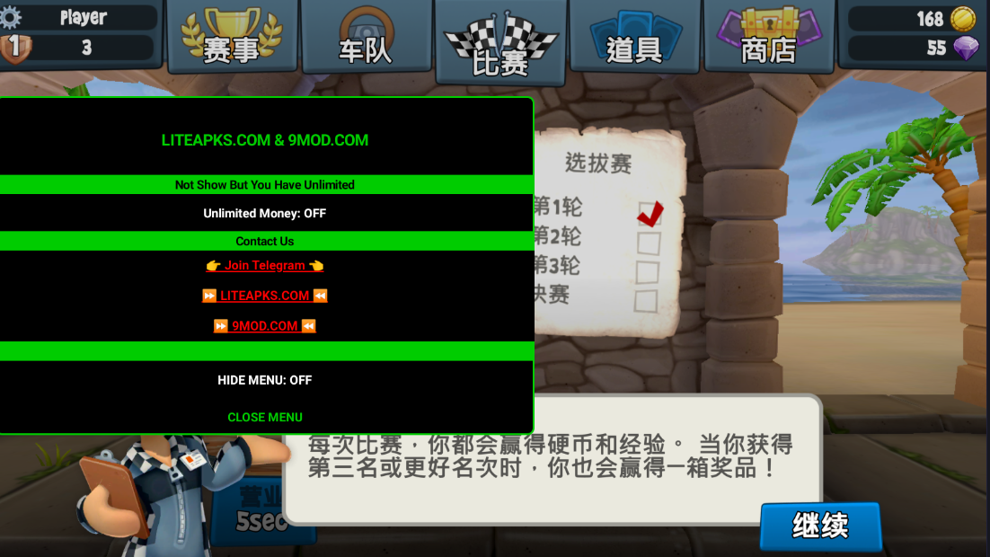 沙滩车竞速2内置mod菜单版是一款卡通风格的沙滩赛车竞技类游戏,游戏已经由网络大神进行修改,解锁无限钻石无限金币。