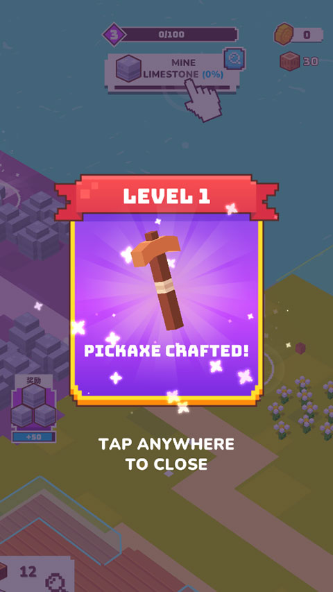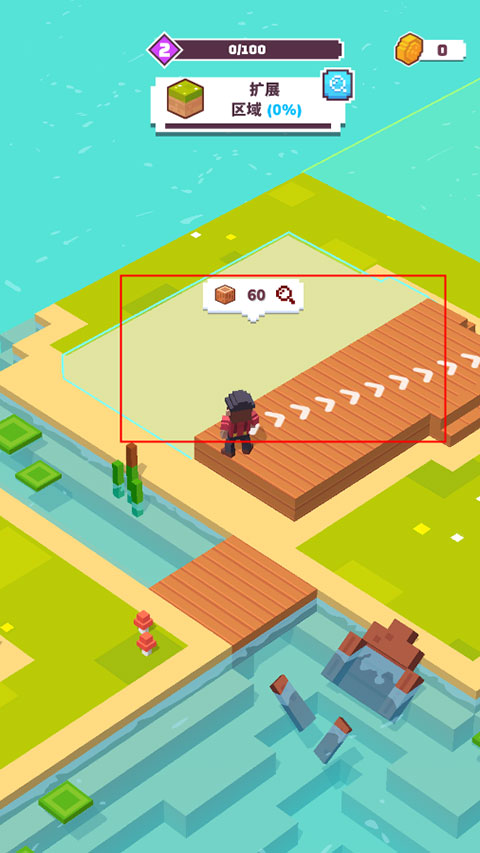 4、完成一个小目标,会奖励区域扩展,我们需要去砍伐更多的树木来建造