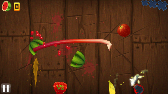 6、不一定出现水果就去切,可以让水果飞一会,与其他水果相汇或者成直线时进行一次性切割,combo的几率更大