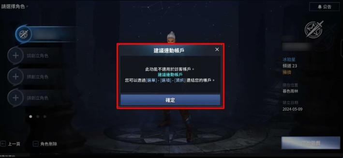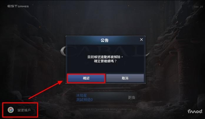 Set3. 到伺服器页面中后,请点选变更帐户,并按确认,先将已绑定的帐号解除一次。