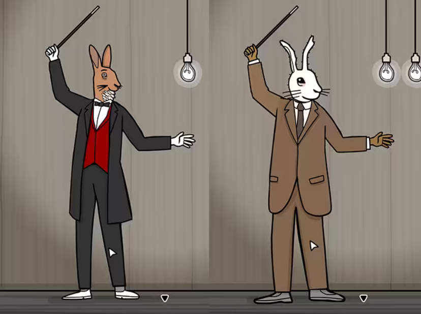 兔子先生的魔术秀游戏依旧采用锈湖系列经典的点击解谜与密室逃脱玩法,游戏中玩家将从兔子先生(Mr. Rabbit)的视角展开游戏,你需要通过20幕迷你解谜构成的一场魔术表演,过程中玩家需解决谜题、排列物品或完成挑战,如果解谜失败则会得到惩罚!